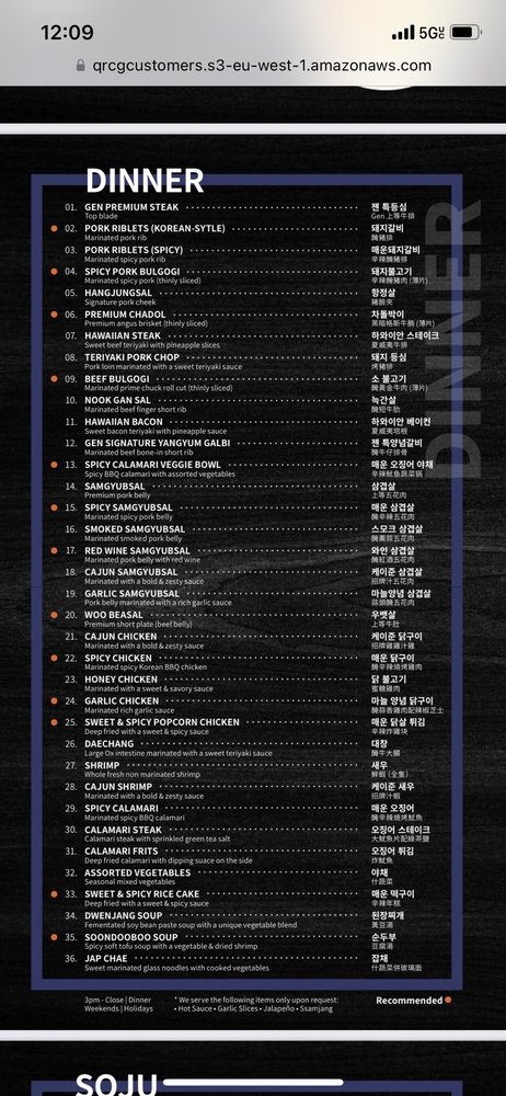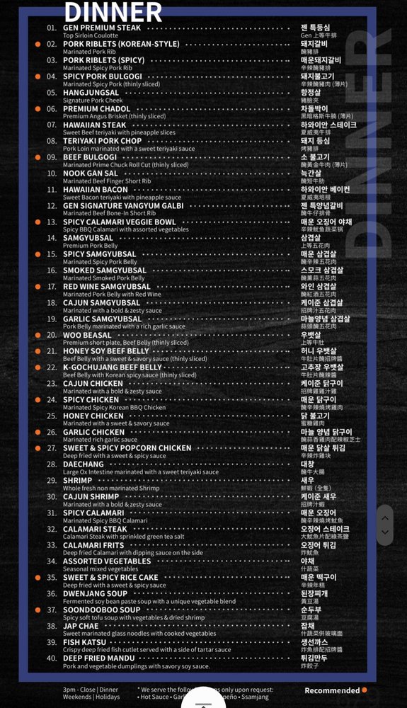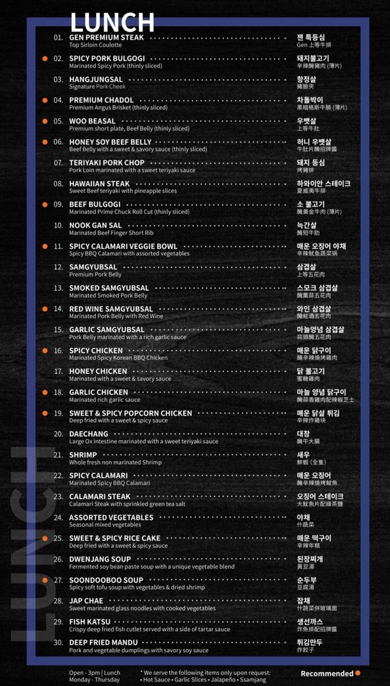 Gen Korean BBQ House Menu (Update 2025)